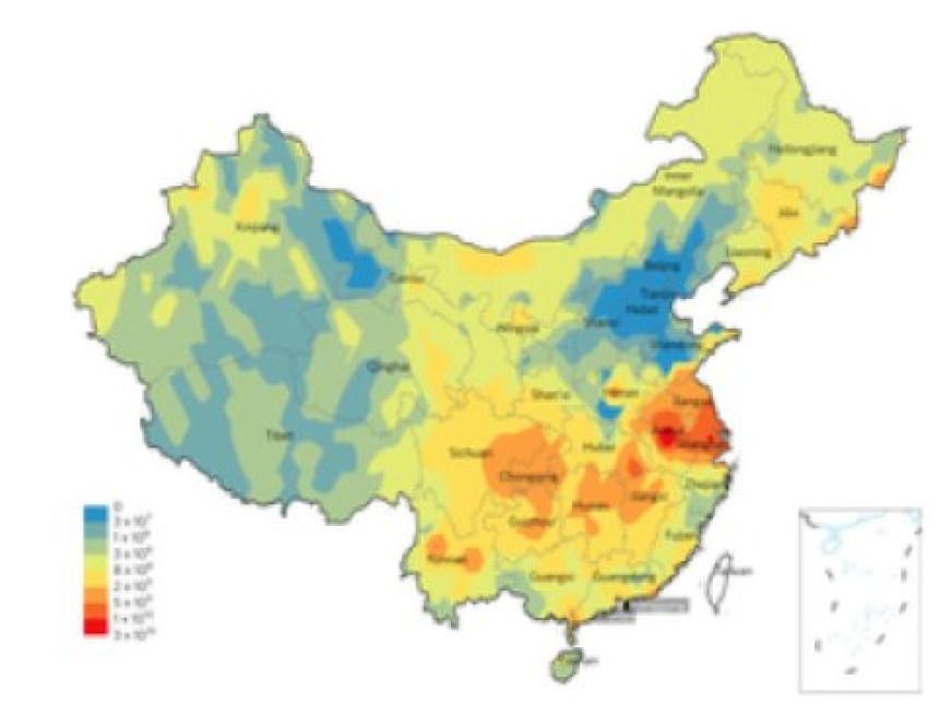 Despite overall declines in most parts of China, the researchers discovered that phosphorous levels had risen from low levels in the sparsely populated northeast.