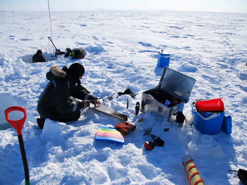 Here, in this extreme environment where temperatures are below the freezing point and salinity is higher than in the sea water, and where light penetration is extremely low for a large part of the year, the ice algae are found.