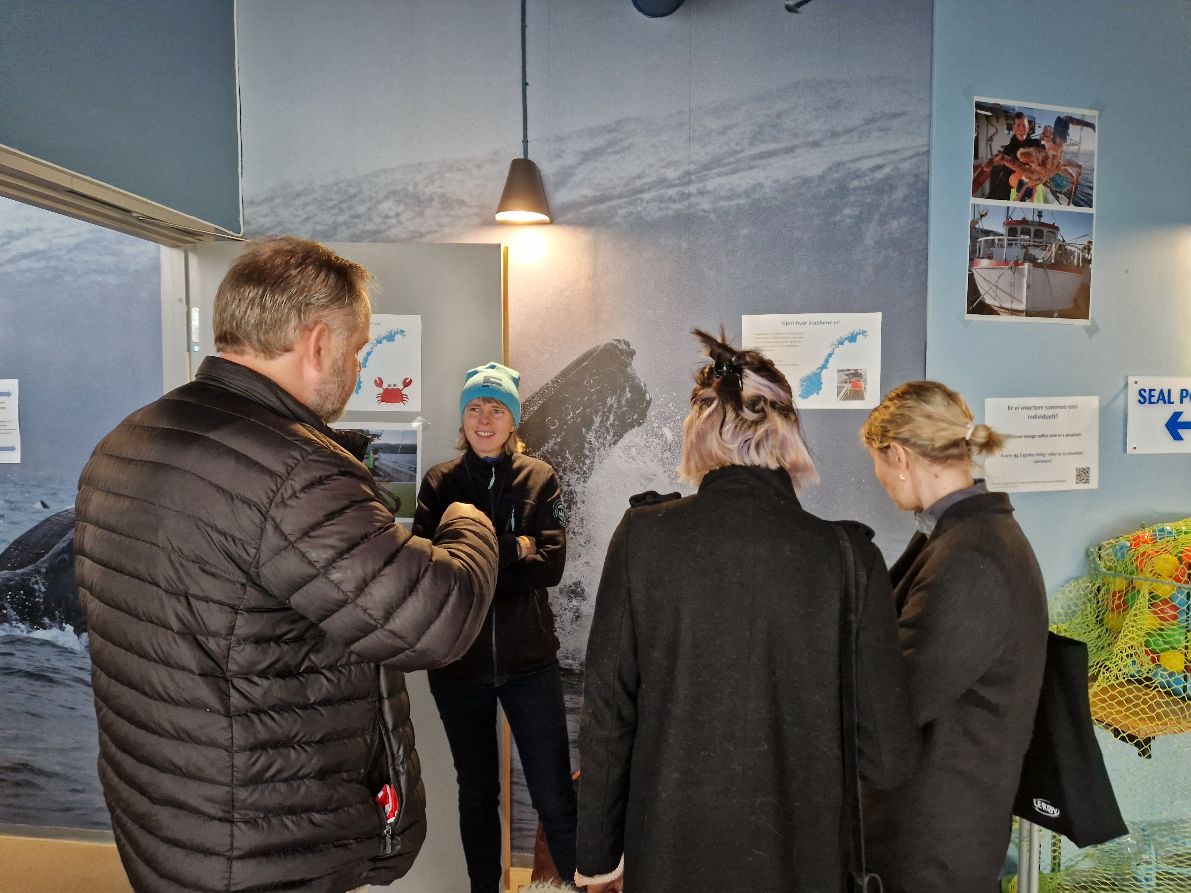 In the evening, the PICO project and EISA project gathered about 50 experts, stakeholders and Tromsø community members to share a dining experience focusing on snow and king crab knowledge and cuisine. The evening included crab-themed food courses interspersed with short presentations giving the latest research on the crabs in the Barents Sea, their ecology and impacts, management dilemmas, and opportunities these valuable but non-native species represent. Falk-Andersson introduced the series of talks with her red king crab poem. Brooks Kaiser further dived into the history and peculiarities of the red king crab invasion, while Paul Berg shared preliminary findings on the snow crab genetics. During the first course, we learned about the food chain of the snow crab, modelled by Helena Michelsen. Then, we got to know Claire Armstrong’s perspective on whether the Norwegian management of the red king crab can be considered schizophrenic or bio-economic optimal – all while enjoying nicely tasting crabs. After a delicious main course, we got a lovely dessert, and Santiago de la Puente presented the markets of the snow crab. We thank everyone who joined us for a lovely evening with many interesting conversations and talks.