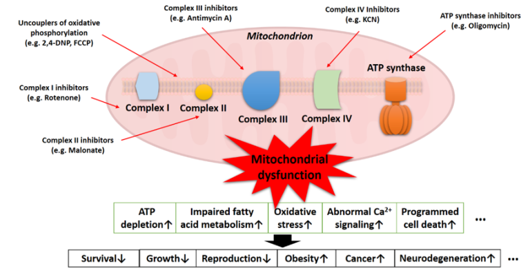 The project will specifically focus on chemicals causing mitochondrial dysfunction which is tightly associated with various diseases in human, such as neurodegeneration, cardiovascular malfunction, diabetes and cancer, and is one of the main drivers of reduced survival, growth and reproduction in wildlife (Figure 3).