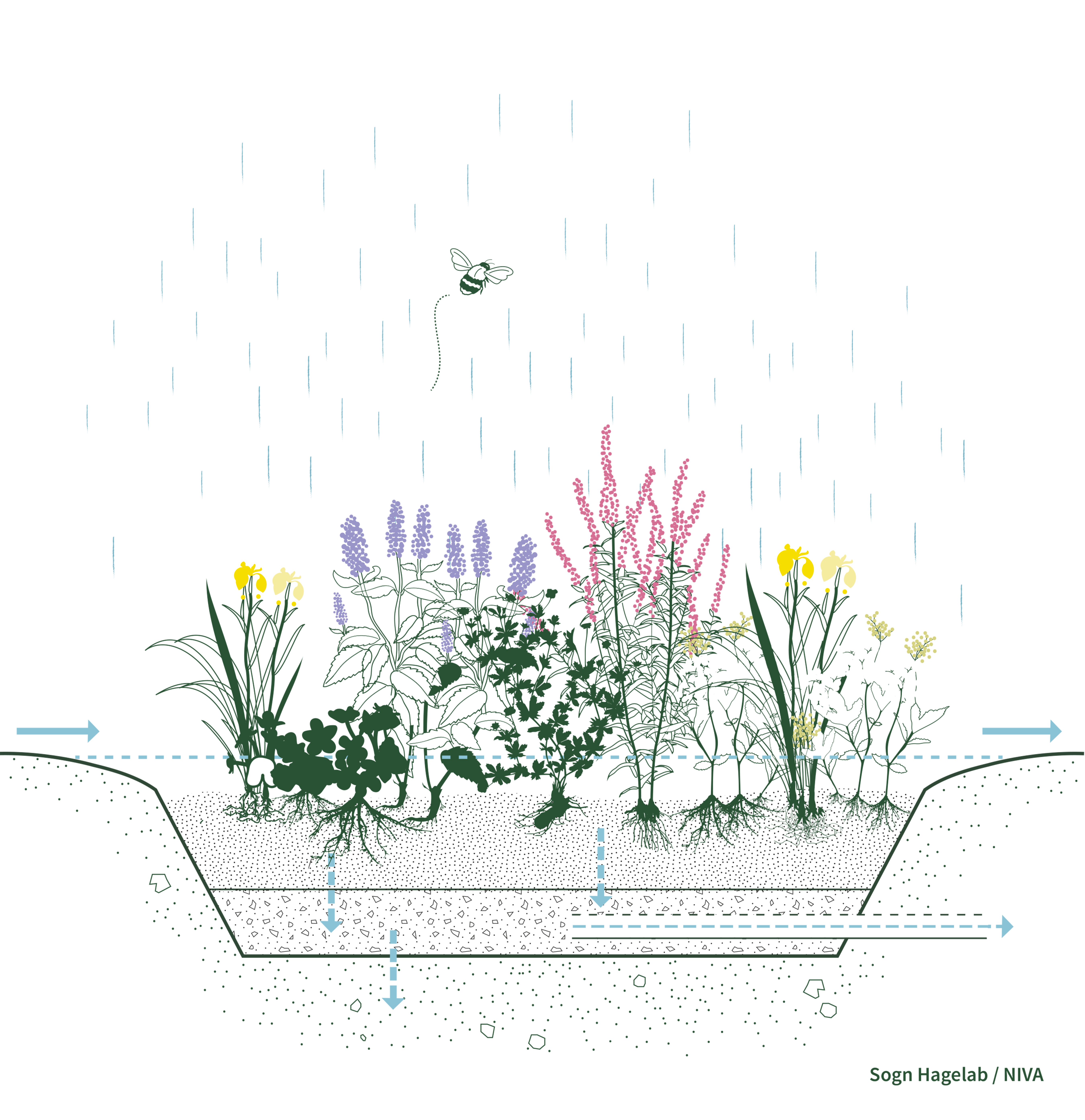 Sogn Hagelab in Oslo is a living lab and collaboration on urban stormwater management between Sogn Allotment Garden, Norwegian Institute for Water Research (NIVA), and the City of Oslo. It features rain gardens, a constructed wetland and other structures designed to capture and retain stormwater, while enhancing the common spaces within the garden.