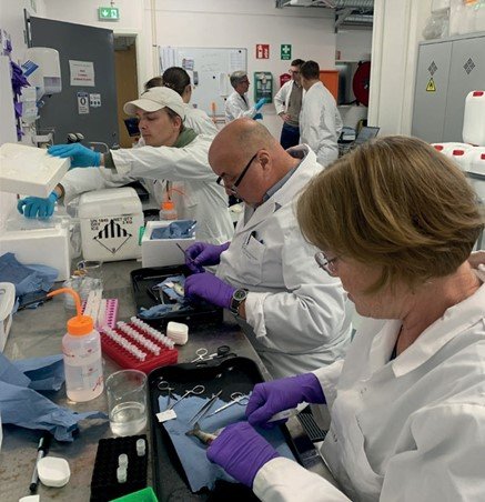 Forsøket ble gjennomført iht. tidsplanen og uten dødelighet. Det ble tatt ut prøver av blod, skinn, gjelle og tarm fra 6 individer per enhet på 11 prøvetidspunkt (Figur 4, 5 og 6) til analyser av mikrobesamfunn og fiskehelse. I tillegg ble det tatt prøver av 5 biofilmbærere per RAS per prøvetidspunkt til kartlegging av mikrobiomer, samt vannkvalitetsprøver før og mellom alle prøveuttak av fisk (Figur 7). Lengde og vekt av all fisk ble registrert 5 ganger i forsøket for å kunne følge vekstindikatorer på individbasis i de ulike fasene i eksperimentet. All prøvetatt fisk ble også vurdert med hensyn på eksterne velferds- indikatorer, kardiosomatisk, hepato-somatisk og gonadosomatisk indeks.