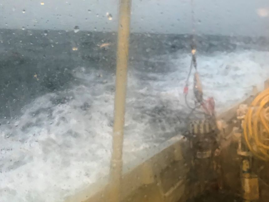 Værvarselet lovet bedre forhold neste dag, så vi avsluttet dagen og la til kai ved Fredrikstad. Tidlig neste morgen dro vi ut mot Torbjørnskjær, men måtte avbryte på grunn av dårlig vær. Med sønnavind opp mot 17 m/s og fire meter høye bølger, ble det avgjort at det både var risikabelt for instrument og personell. Stasjonen på Torbjørnskjær var dermed den eneste vi ikke fikk besøkt denne gangen.